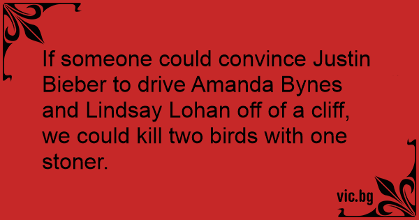 If someone could convince Justin Bieber to drive Amanda Bynes and Lindsay Lohan off of a cliff, we could кill two birds with one stoner.