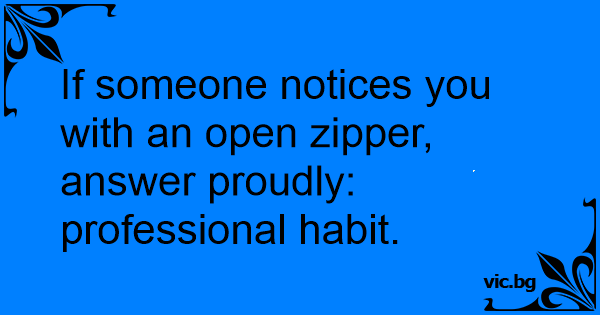 If someone notices you with an open zipper, answer proudly: professional habit.
