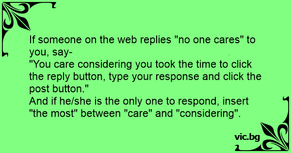 If someone on the web replies "no one cares" to you, say-