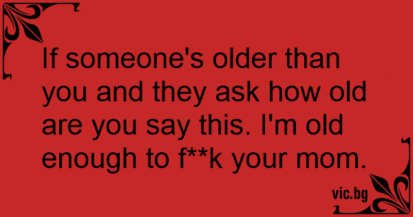 If someone's older than you and they ask how old are you say this. I'm old enough to f**k your mom.