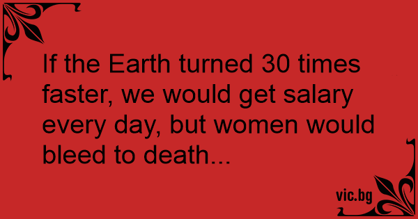If the Earth turned 30 times faster, we would get salary every day, but women would bleed to death...
