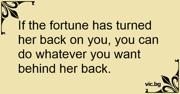 If the fortune has turned her back on you, you can do whatever you want behind her back.