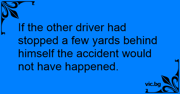 If the other driver had stopped a few yards behind himself the accident would not have happened.