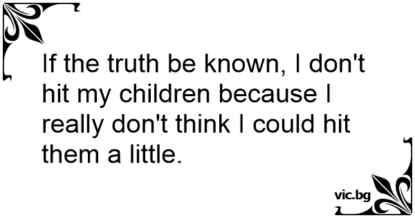 If the truth be known, I don't hit my children because I really don't think I could hit them a little.