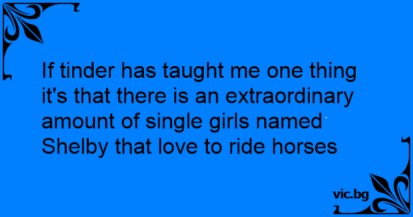 If tinder has taught me one thing it's that there is an extraordinary amount of single girls named Shelby that love to ride horses