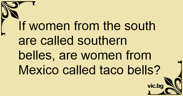If women from the south are called southern belles, are women from Mexico called taco bells?