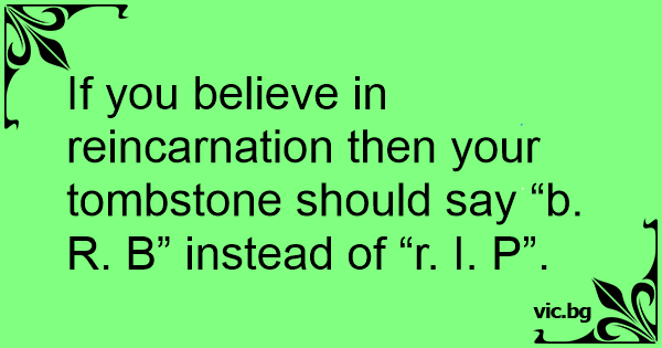If you believe in reincarnation then your tombstone should say “b. R. B” instead of “r. I. P”.