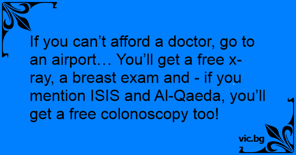 If you can’t afford a doctor, go to an airport… You’ll get a free x-ray, a вrеаsт exam and - if you mention ISIS and Al-Qaeda, you’ll get a free colonoscopy too!