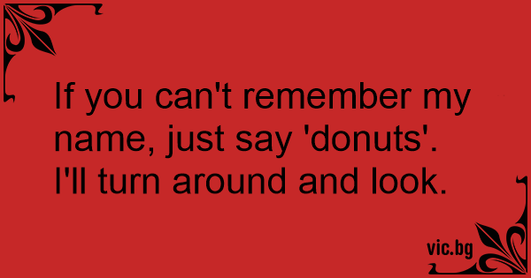 If you can't remember my name, just say 'donuts'. I'll turn around and look.