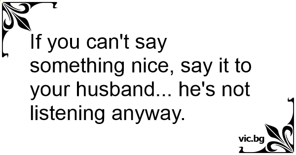 If you can't say something nice, say it to your husband... he's not listening anyway.
