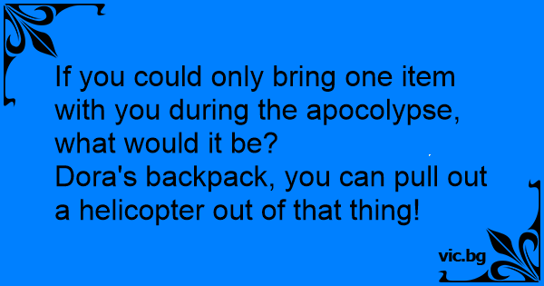 Dora's backpack, you can pull out a helicopter out of that thing!