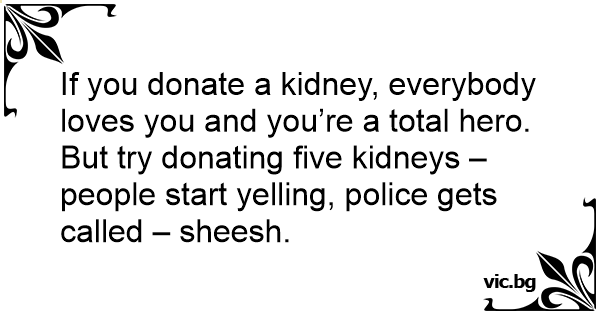 But try donating five kidneys – people start yelling, police gets called – sheesh.