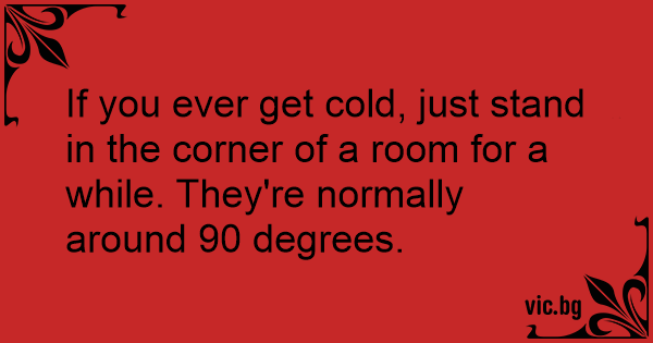 If you ever get cold, just stand in the corner of a room for a while. They're normally around 90 degrees.