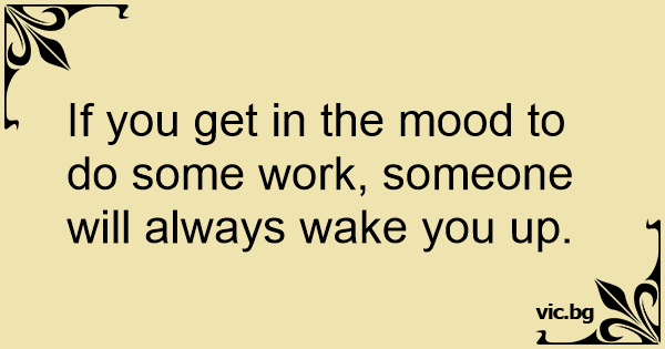 If you get in the mood to do some work, someone will always wake you up.