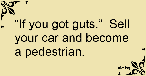 “If you got guts.” Sell your car and become a pedestrian.