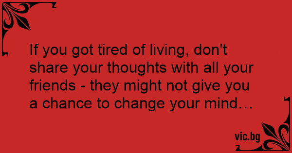 If you got tired of living, don't share your thoughts with all your friends - they might not give you a chance to change your mind…