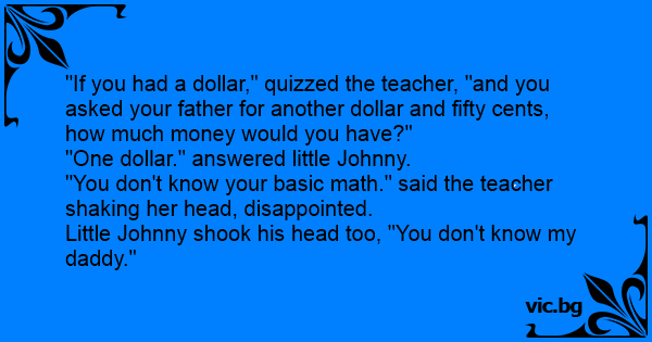 "If you had a dollar," quizzed the teacher, "and you asked your father for another dollar and fifty cents, how much money would you have?"