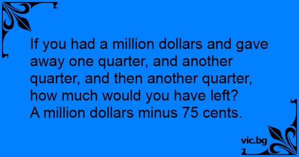If you had a million dollars and gave away one quarter, and another quarter, and then another quarter, how much would you have left?