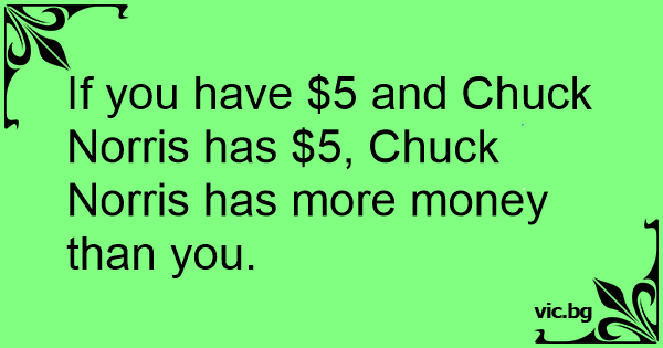 If you have $5 and Chuck Norris has $5, Chuck Norris has more money than you.