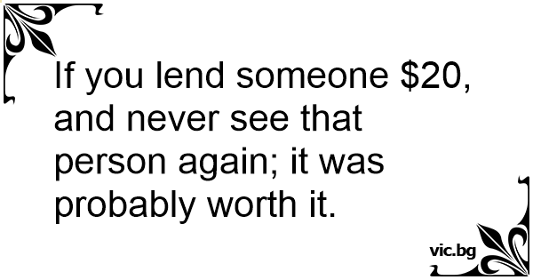 If you lend someone $20, and never see that person again; it was probably worth it.