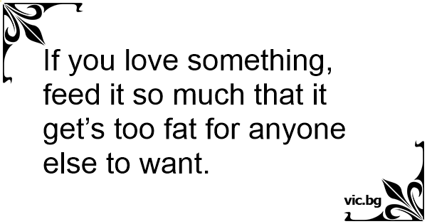 If you love something, feed it so much that it get’s too fат for anyone else to want.
