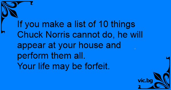 If you make a list of 10 things Chuck Norris cannot do, he will appear at your house and perform them all.