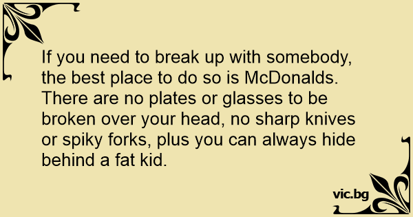 If you need to break up with somebody, the best place to do so is McDonalds.