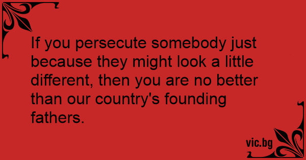 If you persecute somebody just because they might look a little different, then you are no better than our country's founding fathers.