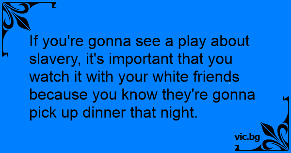 If you're gonna see a play about slavery, it's important that you watch it with your white friends because you know they're gonna pick up dinner that night.