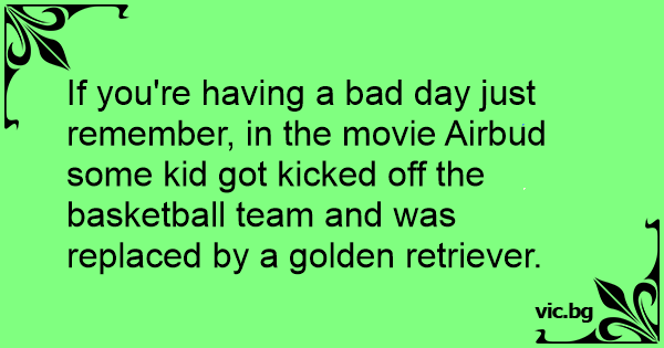If you're having a bad day just remember, in the movie Airbud some kid got kicked off the basketball team and was replaced by a golden retriever.