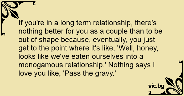 If you're in a long term relationship, there's nothing better for you as a couple than to be out of shape because, eventually, you just get to the point where it's like, 'Well, honey, looks like we've eaten ourselves into a monogamous relationship.' Nothing says I love you like, 'Pass the gravy.'