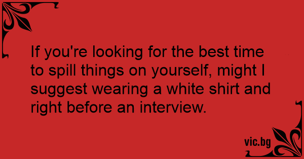 If you're looking for the best time to spill things on yourself, might I suggest wearing a white shirt and right before an interview.