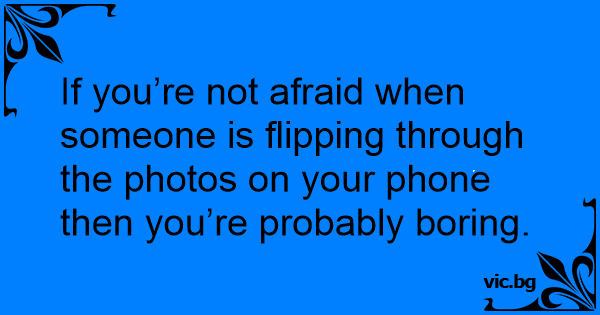 If you’re not afraid when someone is flipping through the photos on your phone then you’re probably boring.
