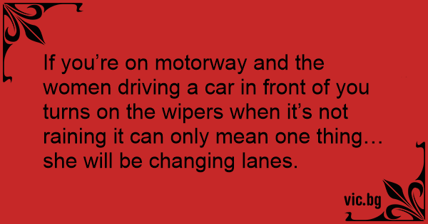 If you’re on motorway and the women driving a car in front of you turns on the wipers when it’s not raining it can only mean one thing… she will be changing lanes.