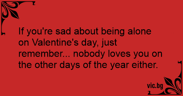 Ако си тъжен, защото си сам на Свети Валентин... не забравяй... Никой не те обича и през другите дни от годината също.
