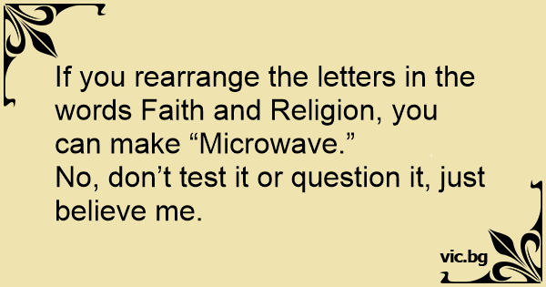 If you rearrange the letters in the words Faith and Religion, you can make “Microwave.”
