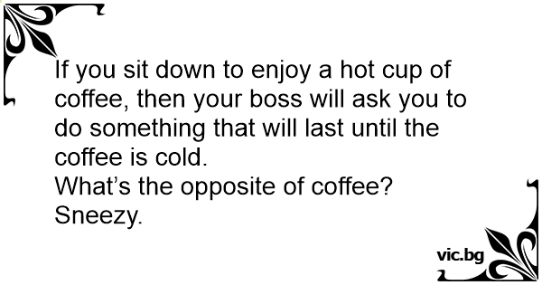 If you sit down to enjoy a hot cup of coffee, then your boss will ask you to do something that will last until the coffee is cold.