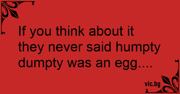 If you think about it they never said humpty dumpty was an egg....