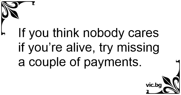 If you think nobody cares if you’re alive, try missing a couple of payments.