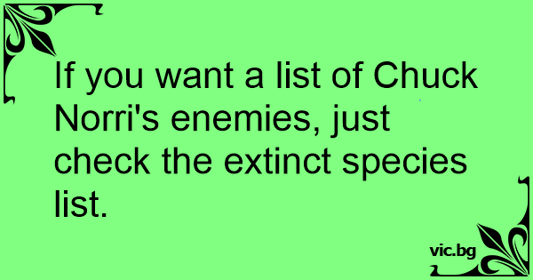 If you want a list of Chuck Norri's enemies, just check the extinct species list.