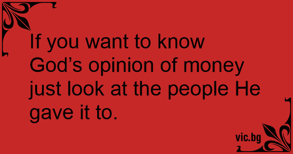 If you want to know God’s opinion of money just look at the people He gave it to.