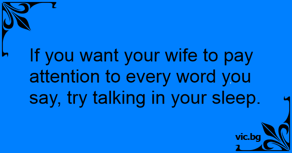 If you want your wife to pay attention to every word you say, try talking in your sleep.