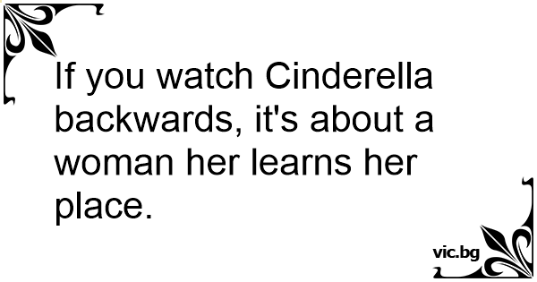 If you watch Cinderella backwards, it's about a woman her learns her place.