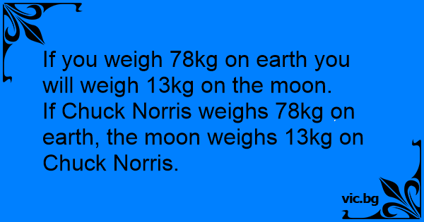 If Chuck Norris weighs 78kg on earth, the moon weighs 13kg on Chuck Norris.