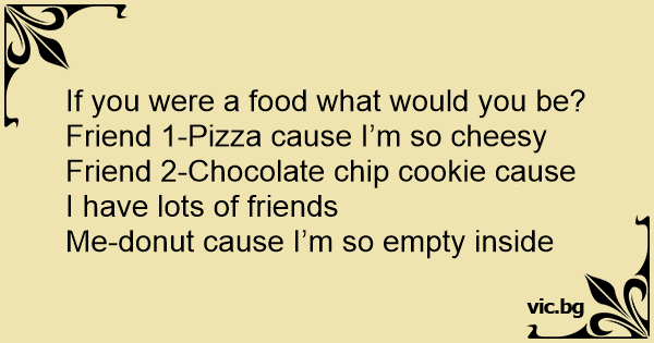 Friend 1-Pizza cause I’m so cheesy