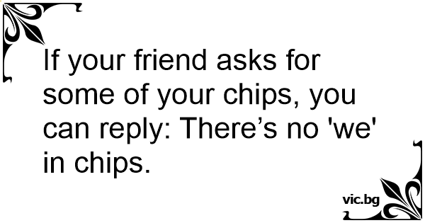 If your friend asks for some of your сhiрs, you can reply: There’s no 'we' in сhiрs.