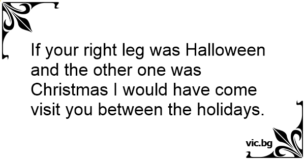 If your right leg was Halloween and the other one was Christmas I would have come visit you between the holidays.