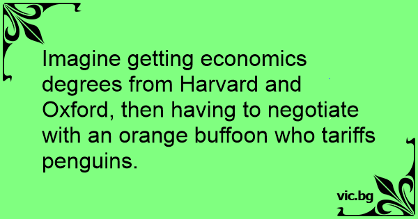 Imagine getting economics degrees from Harvard and Oxford, then having to negotiate with an orange buffoon who tariffs penguins.