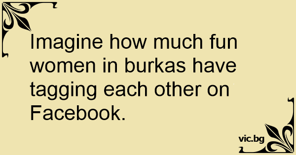 Imagine how much fun women in burkas have tagging each other on Facebook.