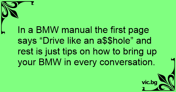 In a BMW manual the first page says “Drive like an а$$hоlе” and rest is just tips on how to bring up your BMW in every conversation.